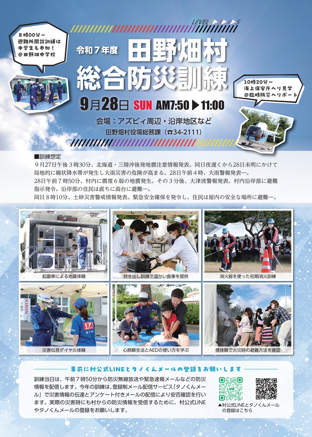 【9月28日(日)】令和7年度田野畑村総合防災訓練を行います