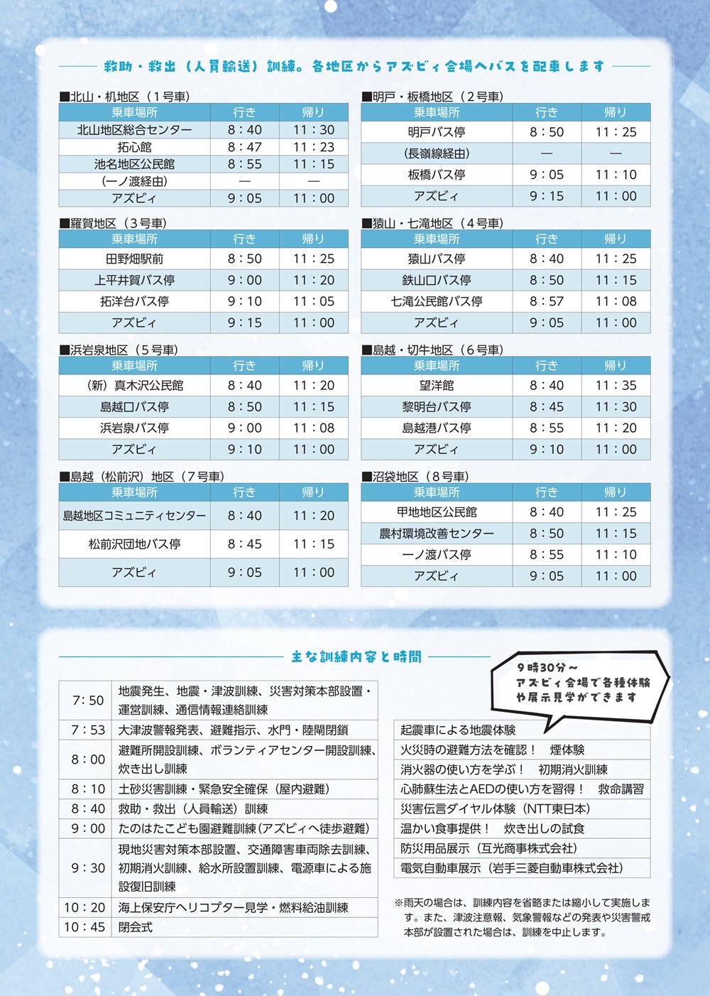 ○各種訓練・体験・展示…アズビィ会場 ※主会場