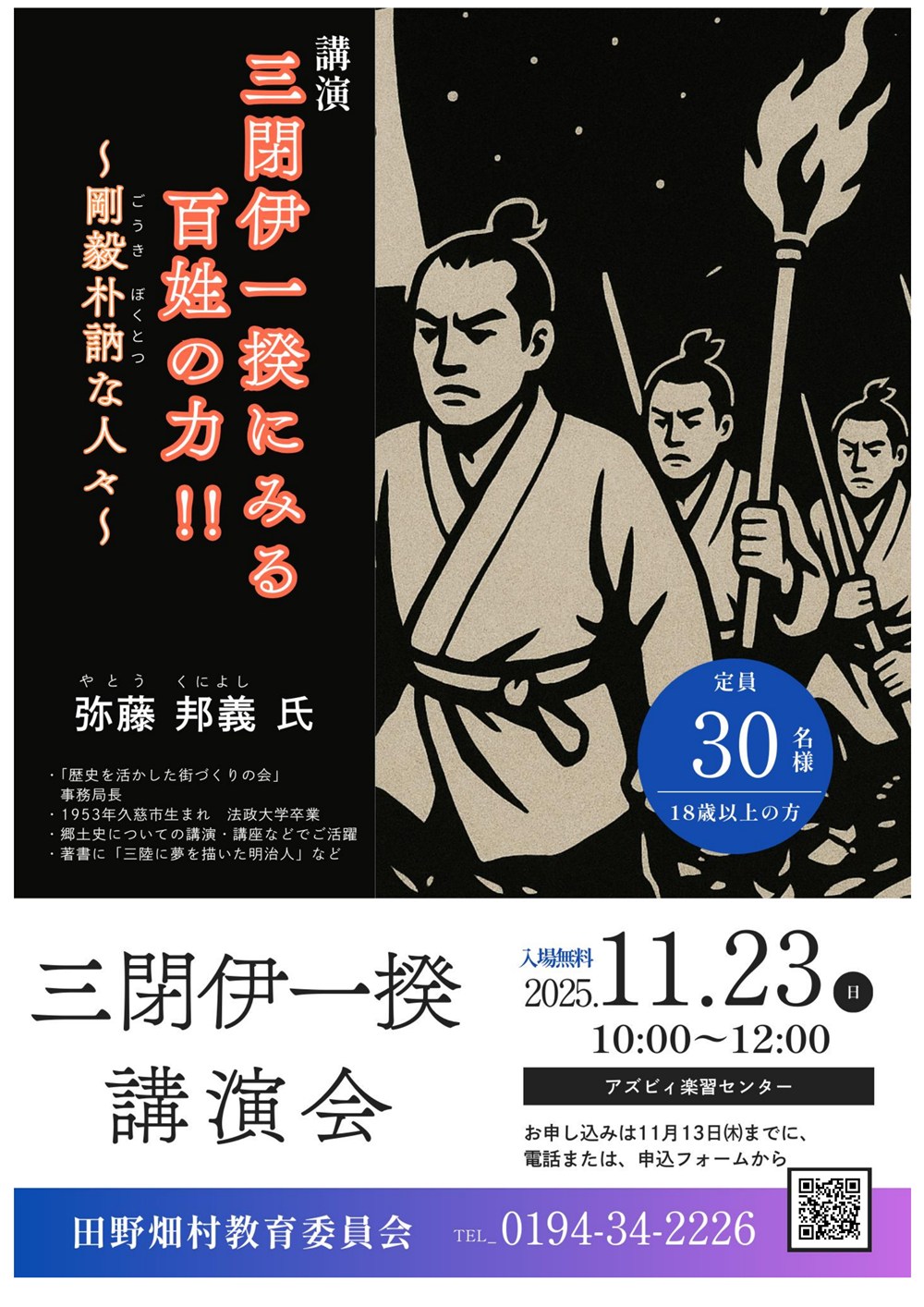 教育委員会では、「三閉伊一揆講演会」を開催します。