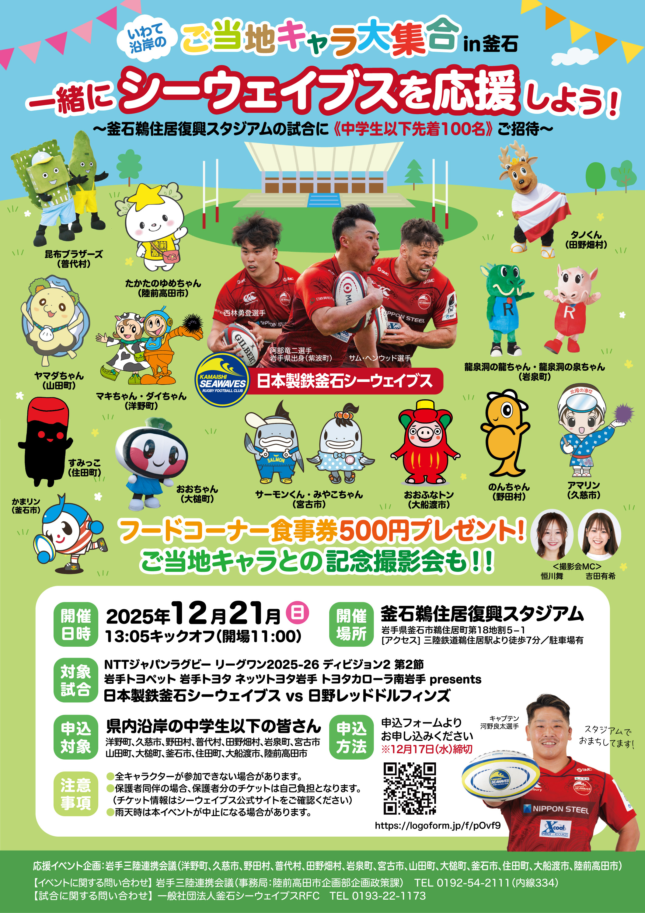 構成市町村の中学生以下先着100名を無料招待(500円分の食事券付)