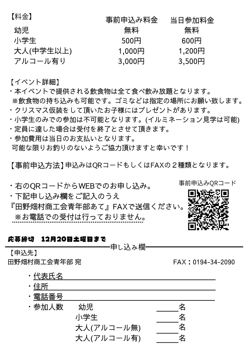 | 事前申し込み料金 | 当日参加料金 | |