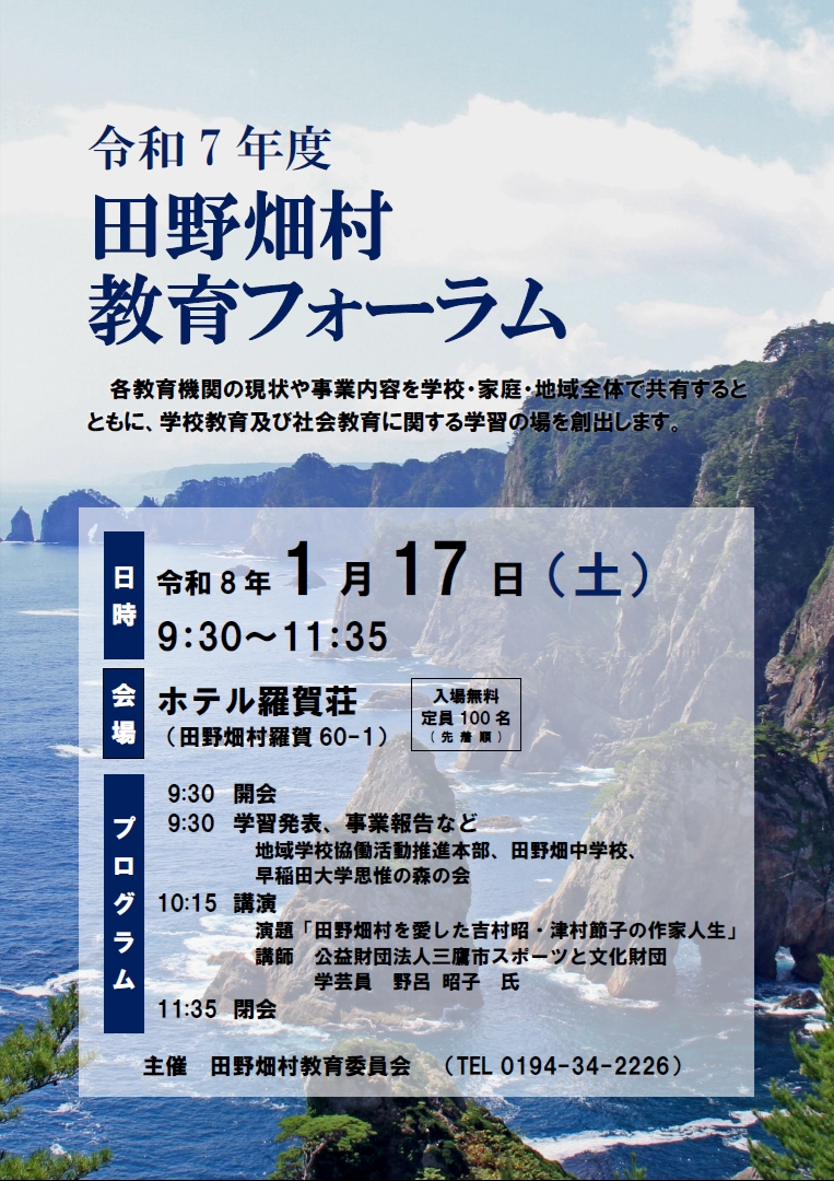 教育委員会では「令和7年度田野畑村教育フォーラム」を開催します。